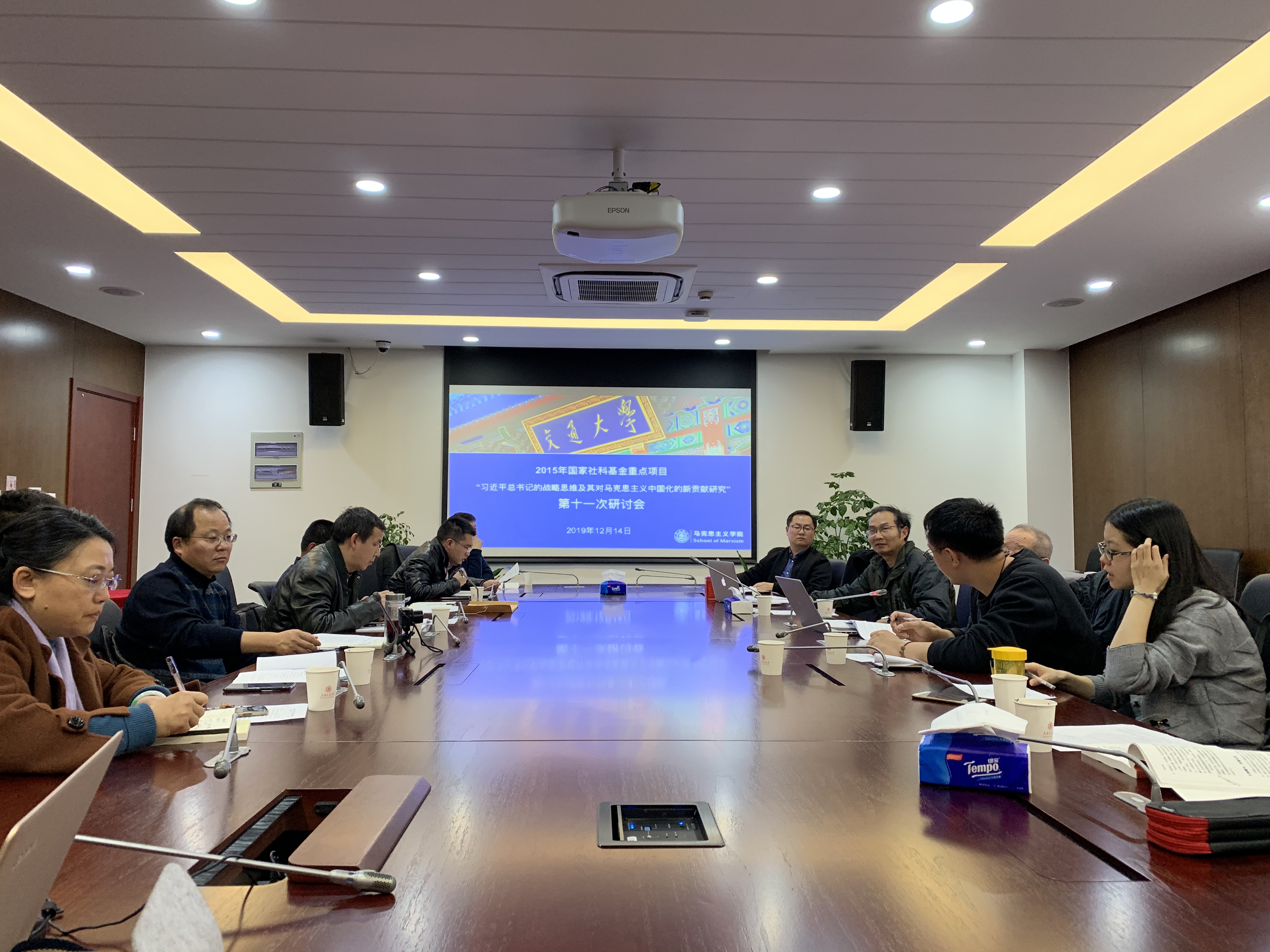 12月14日下午, 司机社 在徐汇校区举办国家社科基金重点项目“习近平总书记的战略思维及其对马克思主义中国化的新贡献研究”第11次研讨会。来自司机社 、华东师范大学、同济大学、华东理工大学、华东政法大学、上海对外经贸大学、上海政法学院、上海电力大学等高校的课题组主要成员20余人参加了此次会议。