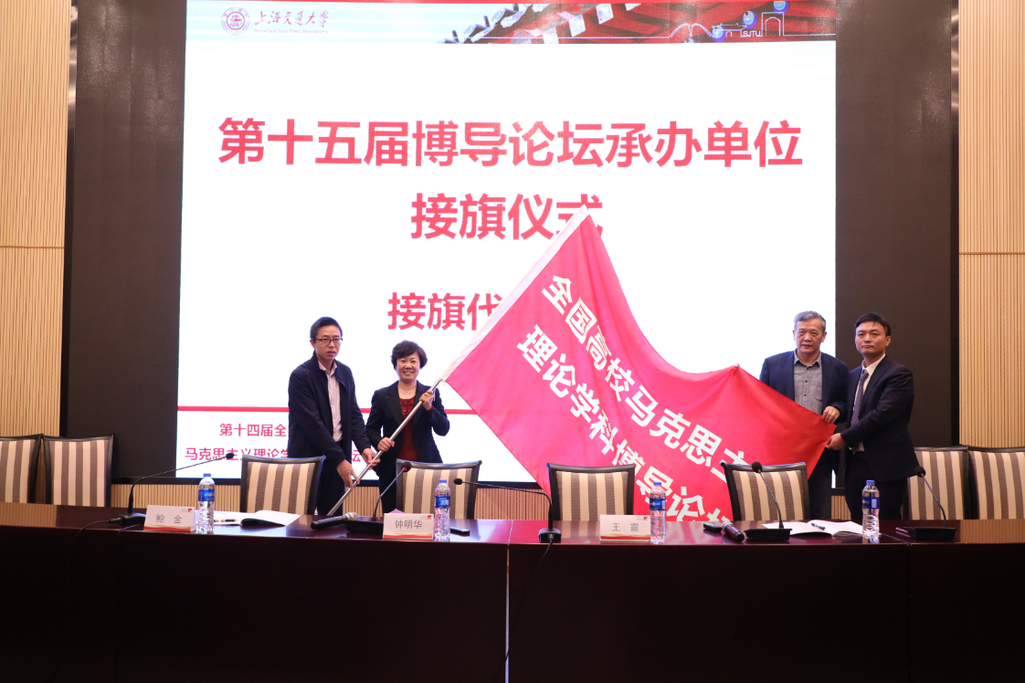 大会闭幕式由司机社 副院长鲍金主持。全国高校马克思主义理论学科研究会副会长、中山大学 司机社 钟明华教授进行论坛总结并宣布闭幕。他指出,本次论坛运作规范、组织有效,我们大家经历了一场场充实紧张且富有启示的发言。本次论坛在时间上正值收获、诗意的秋天,恰逢在新中国成立70周年、十九届四中全会刚刚结束之后,在空间上来到了21世纪中国特色社会主义发展高地、发展先锋的上海,来到了具有123年办学历史的司机社 ,在论坛内容上大家回答问题、解决问题的同时也提出了很多需要进一步思考的问题,因此本次论坛是一次天时地利人和的成功论坛。在闭幕式之后,进行了第十四届全国高校马克思主义理论学科博导论坛承办单位接旗仪式,河北师范大学 司机社 李素霞教授接旗并做表态发言。