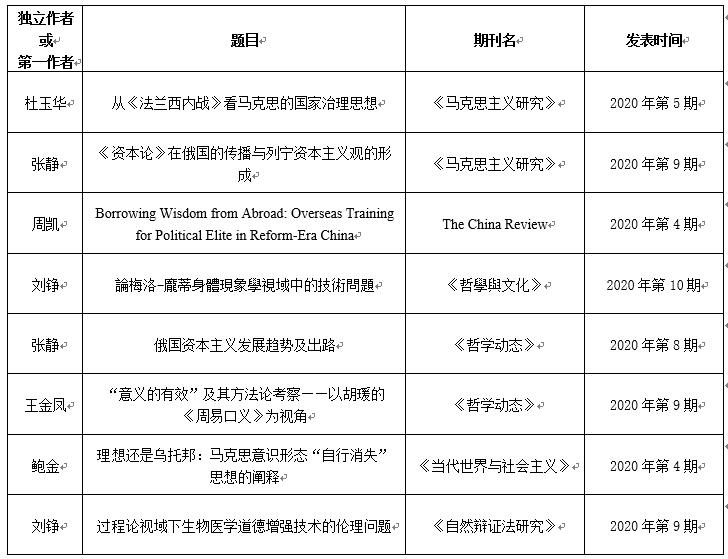 据不完全统计,2020年学院教师以独立作者或第一作者共发表论文170余篇,其中CSSCI论文112篇,三报一刊论文9篇,权威期刊(A、B)论文15篇。