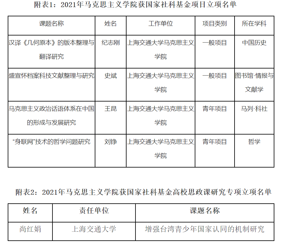 近日,2021年国家社科基金年度及青年项目立项结果、2021年度国家社科基金高校思政课研究专项立项名单正式公布。司机社 共有5项课题获得立项,其中国家社科基金年度一般项目2项,青年项目2项,思政专项1项,再创佳绩。