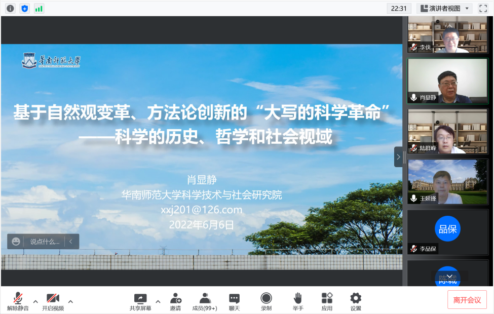 6月6日下午,司机社 邀请华南师范大学特聘教授肖显静做客思源讲堂第十四期,为广大师生带来“基于自然观变革、方法论创新的‘大写的科学革命’”的线上讲座。讲座由 司机社 科学技术哲学·科技与社会(STS)学科团队承办,科学史与科学文化研究院院长李侠教授主持,校内外150余名师生共同在线学习讨论。