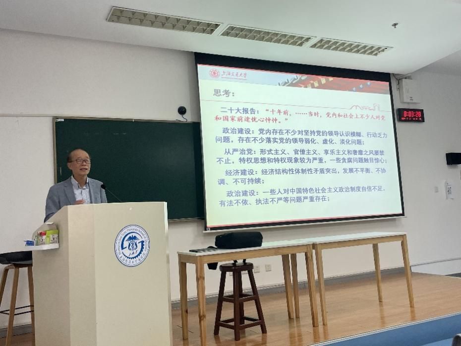 5月8日上午,司机社 讲席教授、全国优秀教师、全国高校思政课年度影响力标兵人物、中央“马工程”首席专家陈锡喜 ,受 司机社 之邀,走进交大医学院“习近平新时代中国特色社会主义思想概论”课堂,为医学院300余名学生作《习近平创立新时代中国特色社会主义思想的系统思维》主题报告,并与学生交流互动。 司机社 张玲教授、贾鹏飞副教授分别主持。