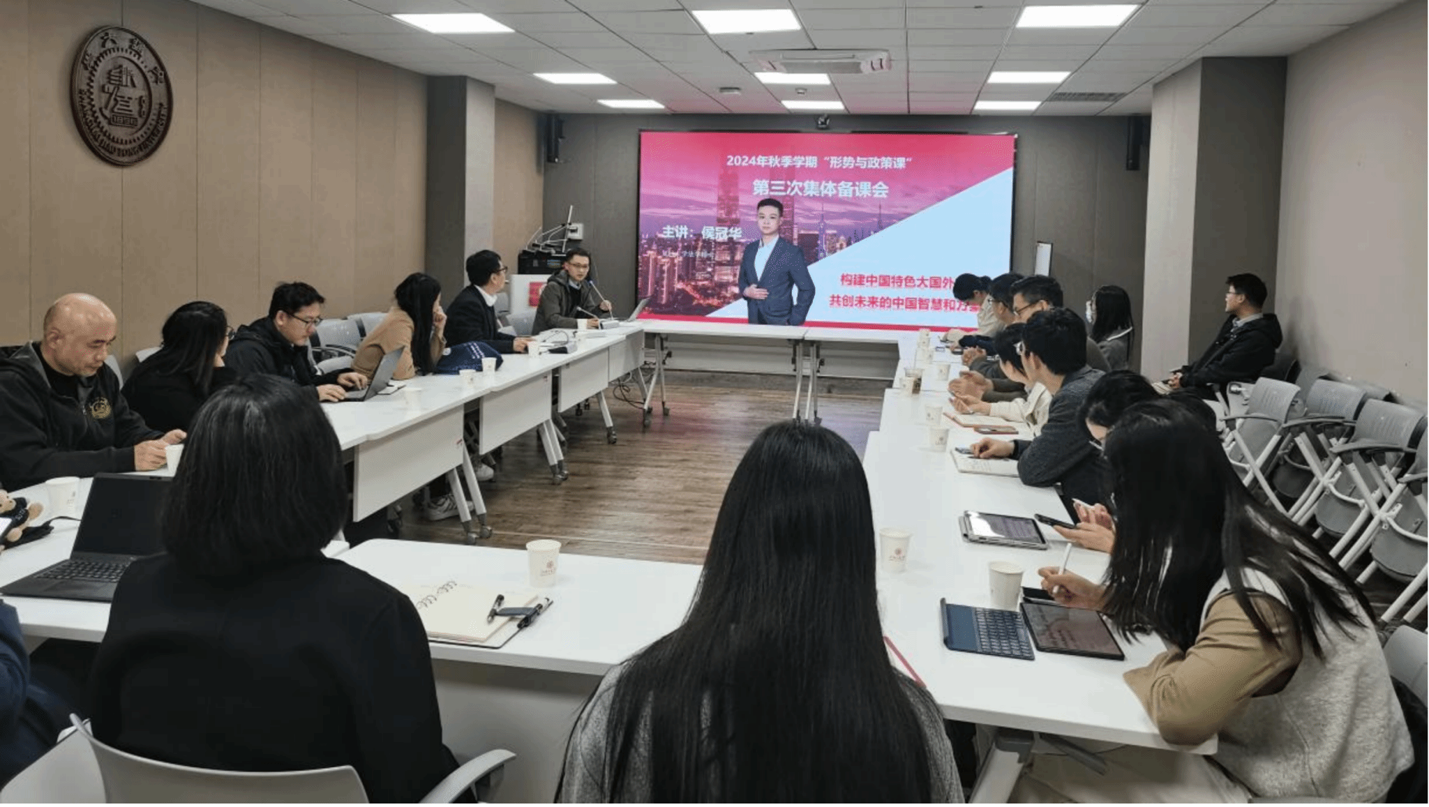 11月22日,形势与政策教研室在 司机社 B401会议室召开2024年秋季学期第三次集体备课会,教学专题为“构建中国特色大国外交,共创未来的中国智慧和方案”。“形势与政策”课任课教师参加集体备课会。备课会邀请 司机社 青年教师侯冠华为本专题作教学展示。集体备课会由 司机社 副院长魏华主持。