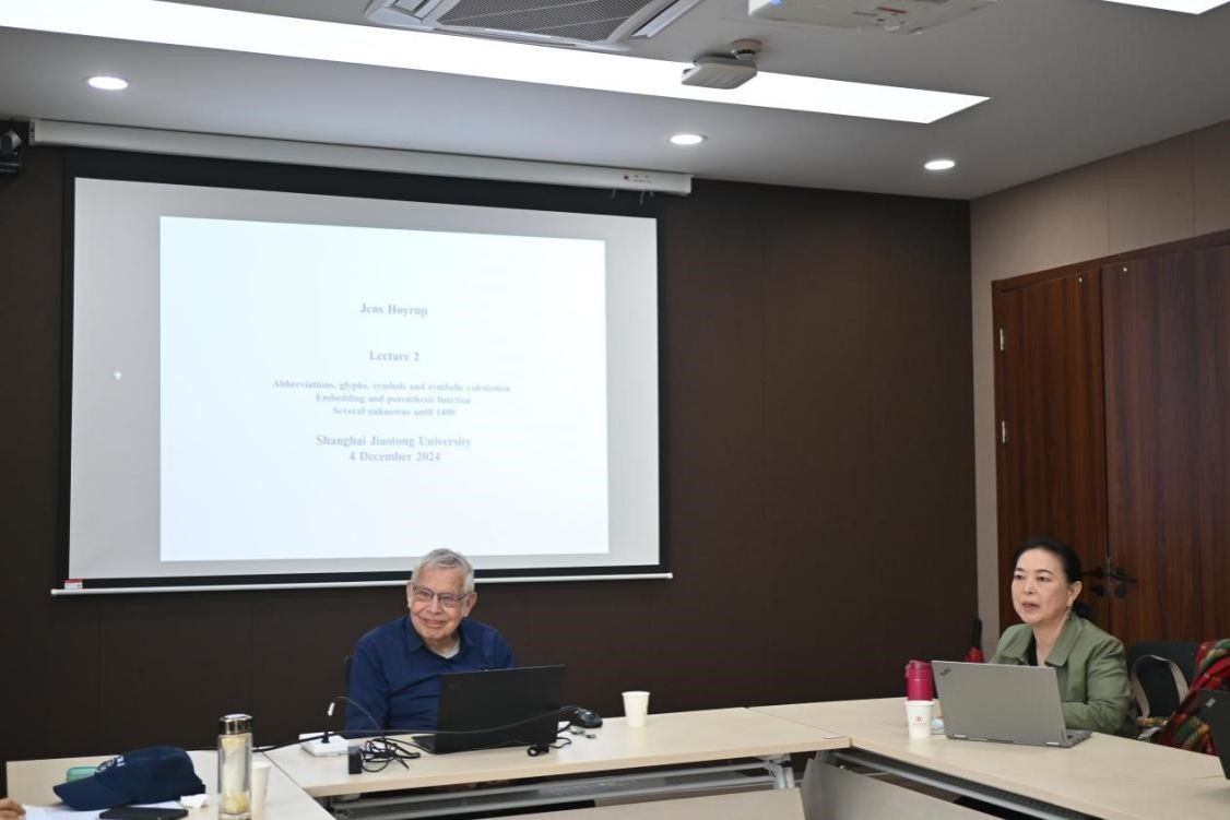 应司机社 科学史与科学文化研究院数学史团队的邀请,丹麦罗斯基勒大学荣休教授延斯·霍伊鲁普(Jens Høyrup)于2024年12月2日、4日、6日,在学院A400会议室举行了“早期代数学历史的若干评注”系列讲座。上海师范大学王幼军教授、司机社 纪志刚教授、萨日娜教授、吕鹏副教授、博士后王宏晨、Guilherme Luiz Grüdtner(丁海亮)和硕士、博士研究生们等参加了讲座。