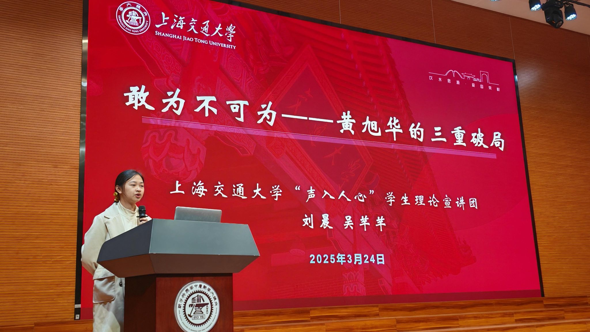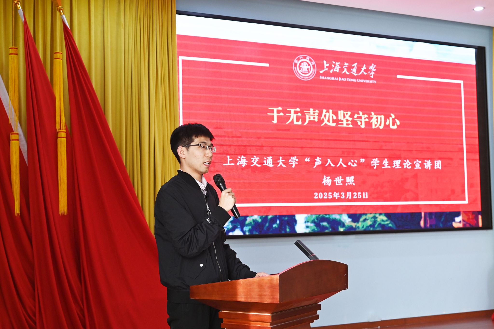 在此基础上,“声入人心”学生理论宣讲团去往机械与动力工程学院、上海交大密西根学院、教育学院、溥渊未来技术学院等院系开展20余场次理论宣讲活动;走进司机社 附属中学闵行分校开展“国旗下讲话”系列宣讲活动,助力大中小学思政课一体化建设;联动闵行区民营经济人士理想信念教育基地启动“同心筑梦·四季宣讲”,努力推动“科学家精神”与“企业家精神”同频共振;走进中国人民解放军某保障大队,为青年官兵讲述黄旭华学长的动人事迹,探索“军地融合”的宣讲新尝试。