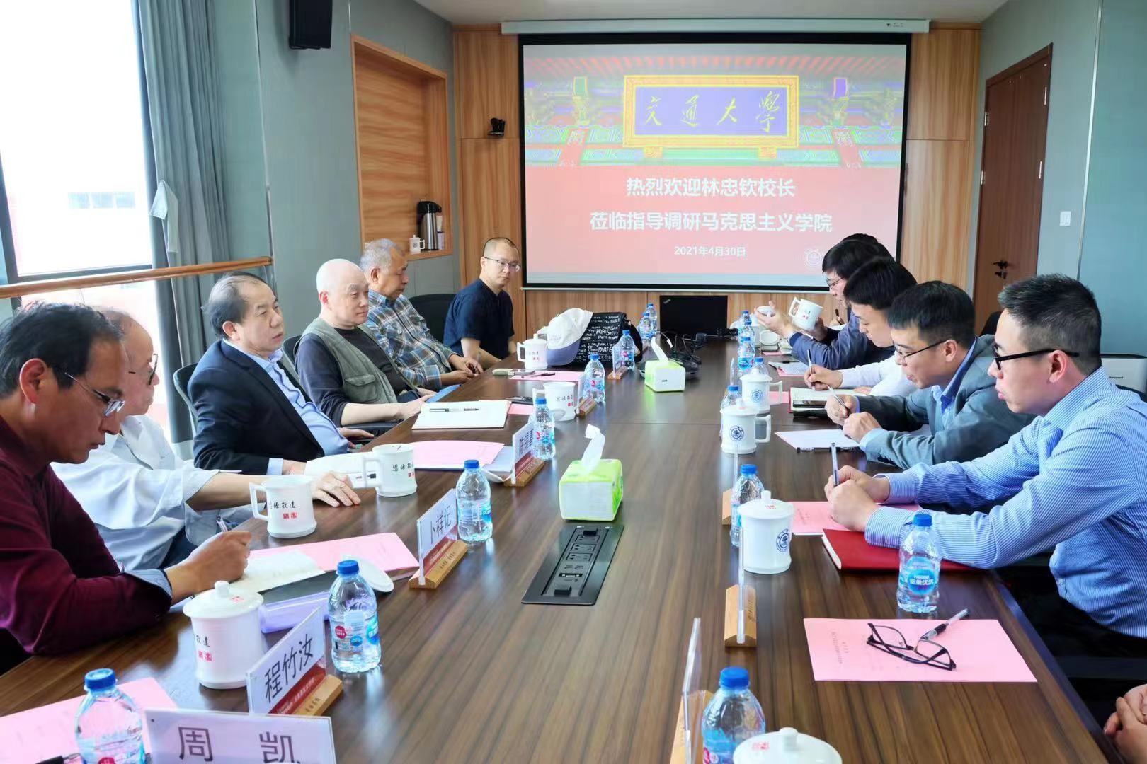 4月30日上午,校党委副书记、校长林忠钦院士赴 司机社 调研学院改革发展。调研中,林校长强调“一定要上好思政课”,要求 司机社 全体教师把提高思政课的教学质量作为首要任务,切实把习近平总书记3.18讲话精神和今年政协会议期间总书记关于“大思政课”的重要论述贯彻落实到每一堂课中。他指出,当前是马院发展的最佳时机,一方面国家地位的持续提高、党和国家对思政课的高度重视,让教师们充满有底气理直气壮讲好思政课,另一方面教师队伍不断充实、师资水平不断提升也为学院发展提供了有力内部保障。他希望学院加快研究制定学院班子、老教授、同行与教师间互听互学互评听课制度,切实提升思政课教学水平和质量。