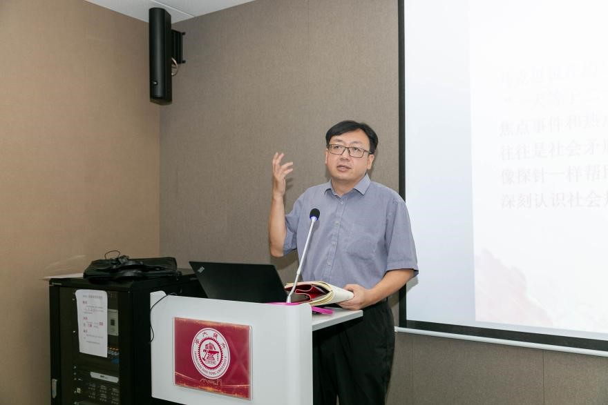 于朝阳作课堂教学交流。他分享了自己立足专业特色,因材施教、灵活考核、“讲课”而非“读课”的经验,勉励教师以小环节见大格局、以小故事见大担当、以小问题见大视野、以小课堂见大情怀。