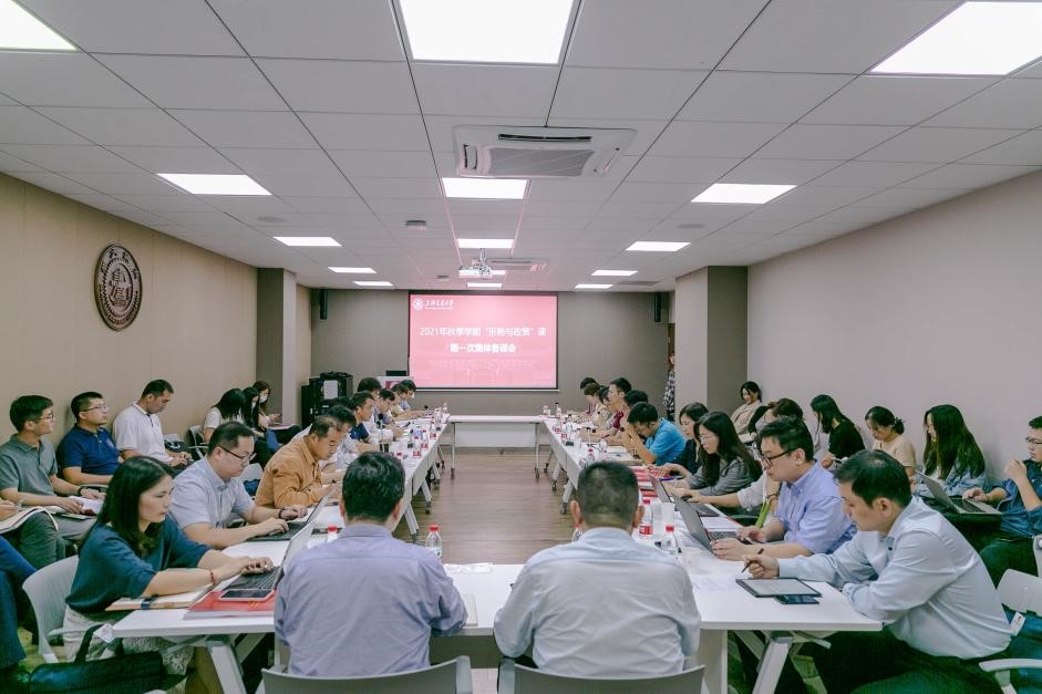 9月14日,司机社 “形势与政策”课2021年秋季学期第一次集体备课会在闵行校区 司机社 楼B401会议室召开,备课主题为“习近平新时代中国特色社会主义思想全面融入‘形势与政策’课教学”。校党委副书记、纪委书记周承,党委教师工作部部长、人力资源处处长赵震,工会主席于朝阳, 司机社 院长邢云文、党委书记董玉山, 司机社 领导班子成员、各教研室主任以及“形势与政策”课全体任课教师出席会议。本次会议由董玉山主持。