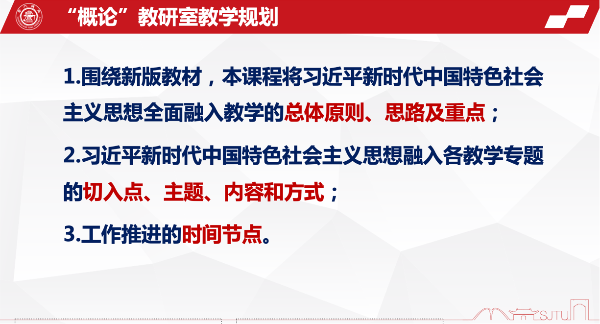 通过本次集体备课,“概论”教研室进一步明晰了本课程肩负着系统全面讲授习近平新时代中国特色社会主义思想的重大使命和责任,在教学过程中既要体现其与毛泽东思想、邓小平理论、“三个代表”重要思想、科学发展观的一脉相承,又要突出展现其相对独立的科学体系,能够引导学生学习领会这一思想的时代背景、理论渊源、实践意义,以及深刻理解核心要义、精神实质、丰富内涵、基本观点、实践要求。“概论”教研室在新学期将通过集体备课会和教学小组研讨会等方式全力推进各项教学改革工作的走深、走实。