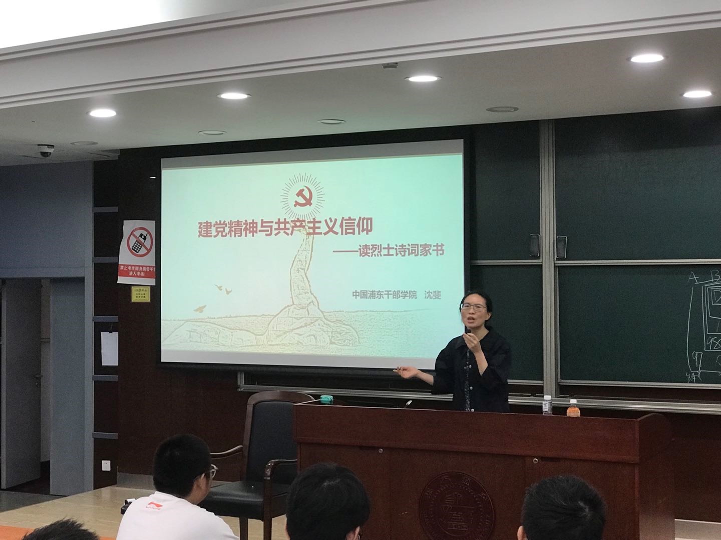 树高千尺有根,水流万里有源。为加深同学们对伟大建党精神是中国共产党的精神之源之流、起源和发展的理解,2021年10月15日下午,中国浦东干部学院沈斐教授应邀走进司机社 “思想道德与法治”课堂,为近百名同学带来“建党精神与共产主义信仰”专题讲座。