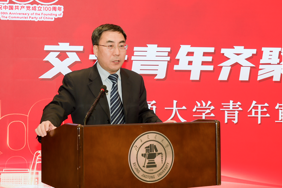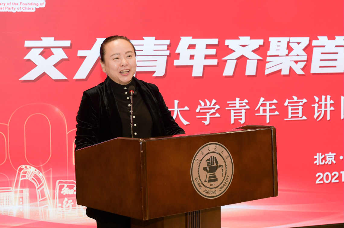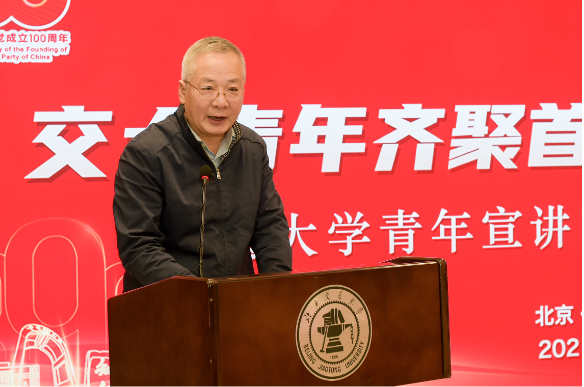 金秋十月,秋风送爽。在中国高等教育学会宣传工作研究分会支持下,10月16日,司机社 、北京交通大学、西安交通大学、西南交通大学齐聚北京交通大学,举办“交大青年齐聚首 奋进强国新征程”交通大学青年宣讲团成立暨首场宣讲活动。中国高等教育学会副秘书长郝清杰,北京交通大学党委副书记、副校长孙守光,教育部思想政治工作司宣传教育处副处长王磊,教育部新闻宣传中心移动传播处处长杨晨光,宣传工作研究分会副理事长宁秋娅,宣传工作研究分会名誉监事长蒋朗朗,司机社 党委常委、宣传部部长胡昊,西安交通大学党委常委、宣传部部长成进,西南交通大学党委宣传部常务副部长汪铮出席此次活动。活动由北京交通大学党委常委、宣传部部长蓝晓霞主持。
