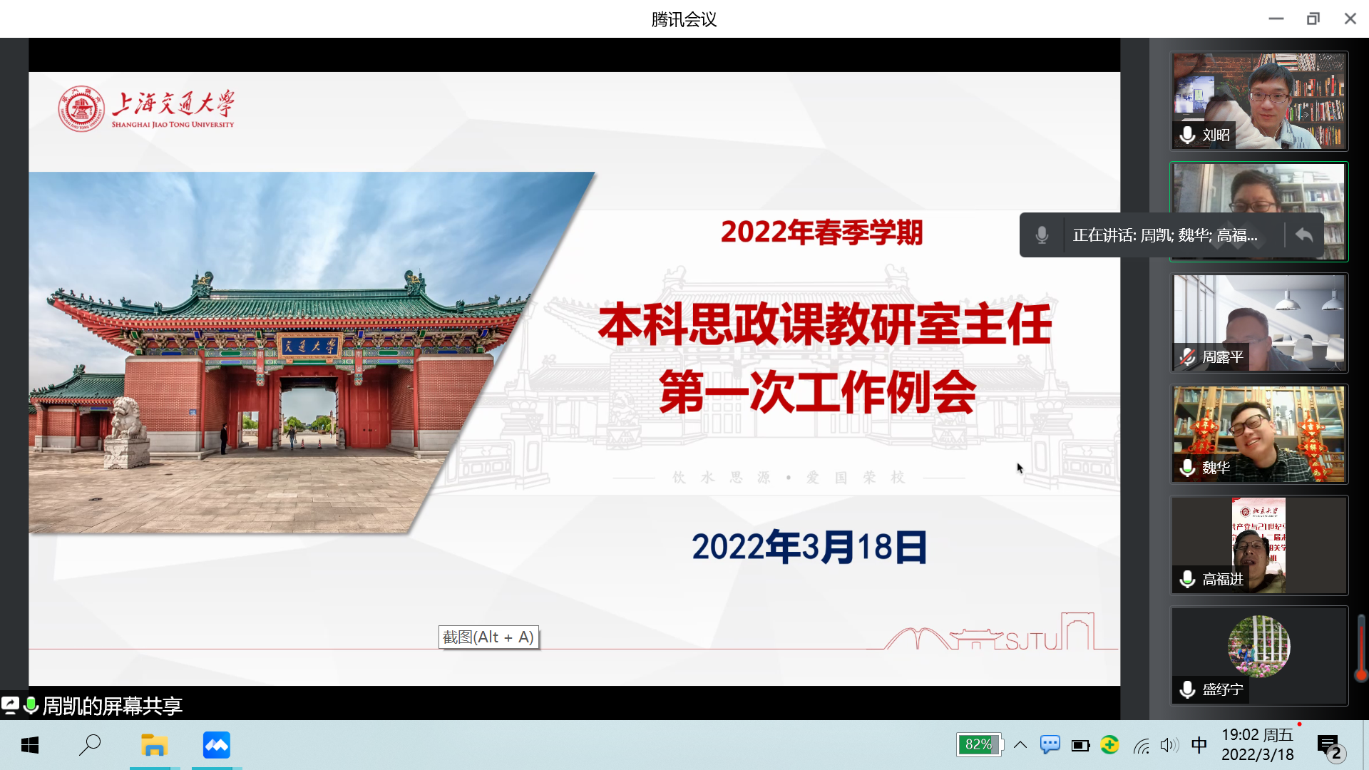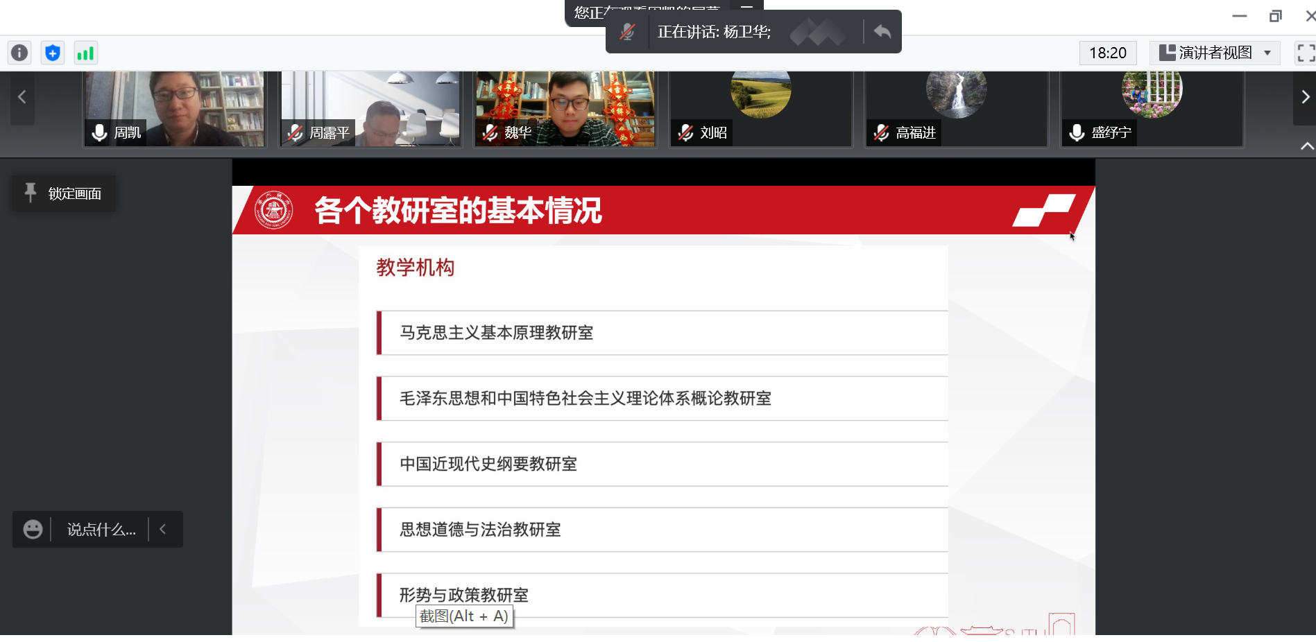 会议首先总结分析了校园封控以来本科生思政课在线教学的总体情况和突出特点,充分肯定马院教师全力投入教学工作的敬业精神和使命担当。其次,各个教研室主任分别介绍了本教研室当前的教学组织形式和教学内容设计,重点介绍围绕抗疫这一特殊时期如何挖掘思政元素讲好大思政课的基本经验。与会人员一致认为,应紧紧抓住“封校”抗疫的现场教学契机,通过专题讲授、问题讨论、小组展示等多种方式,提高在线教学课程内容质量,帮助青年大学生将亲身经历转化为使命担当和坚韧品格。