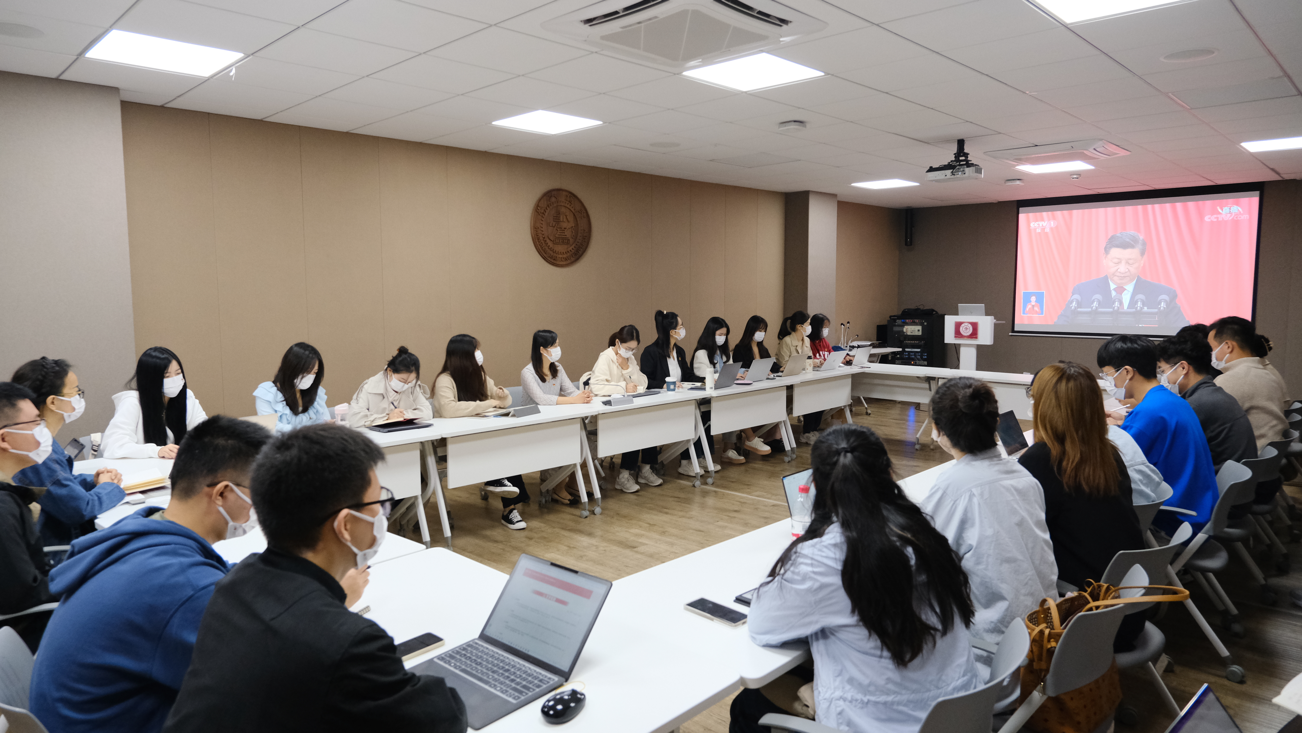 10月16日上午,中国共产党第二十次全国代表大会在北京隆重开幕。在这一重要历史时刻,司机社 党委发动全院师生通过各种方式收听收看党的二十大开幕实况直播,实时聆听习近平总书记作报告。学院党委精心组织党政班子成员、党支部书记、教研室主任、党员代表、入党积极分子代表、教学科研骨干以及学生代表等二十余人,在学院会议室线下集体收看现场直播,会后立即展开热烈议论,纷纷表达适逢盛会的喜悦兴奋之情。