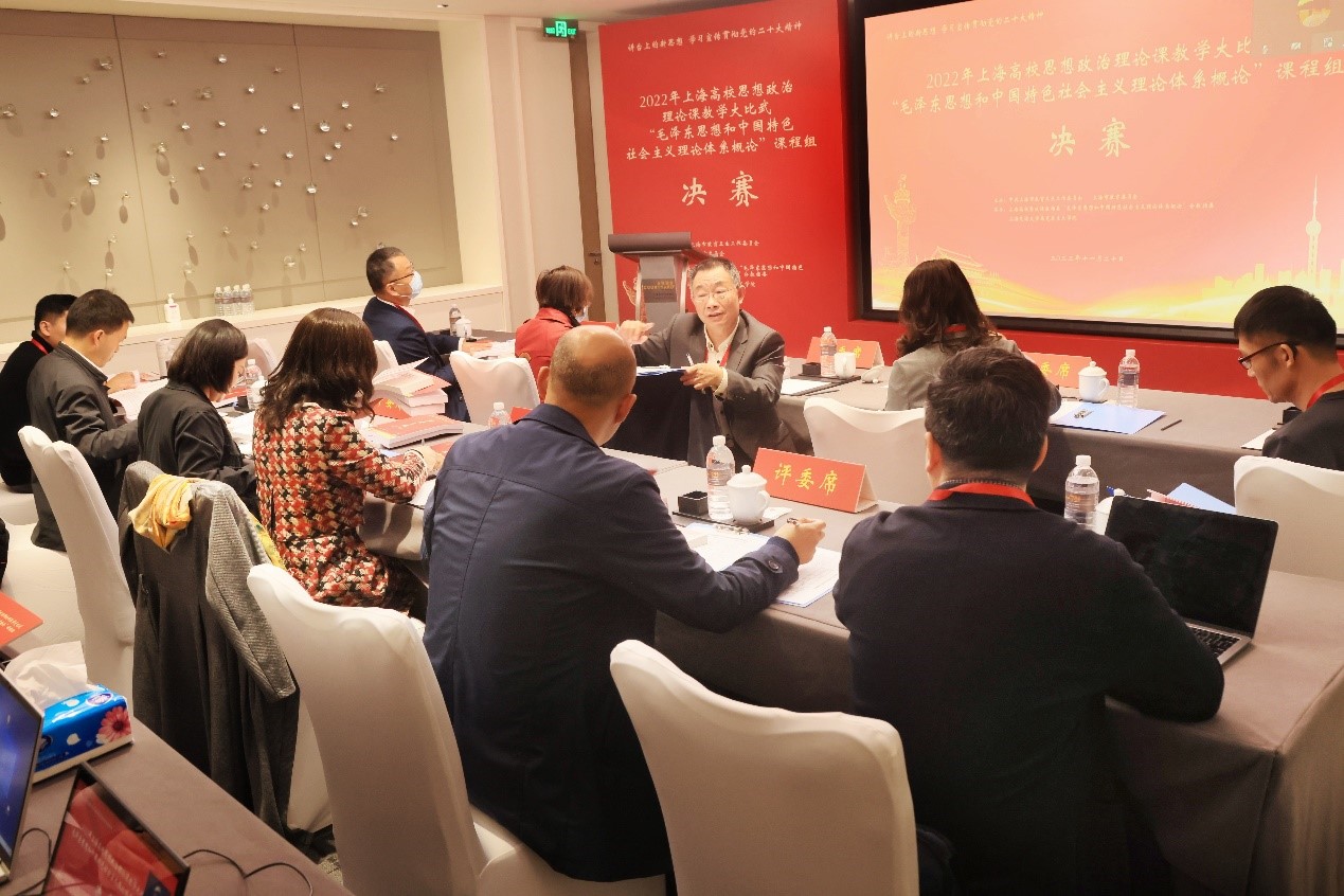 为深入学习贯彻党的二十大精神,贯彻落实习近平总书记在中国人民大学考察时的重要讲话精神,深入推进上海“大思政课”综合改革试验区建设,加快落实《中共上海市教育卫生工作委员会 上海市教育委员会关于组织开展“2022年度上海高校思想政治理论课质量提升行动”的通知》要求,上海高校思想政治理论课教学大比武“毛泽东思想和中国特色社会主义理论体系概论”课程组决赛于11月20日在司机社 成功举行。本次比赛由司机社 承办,学院党委书记董玉山在致辞中表示,衷心感谢各位评审专家莅临交大,预祝比赛圆满成功。