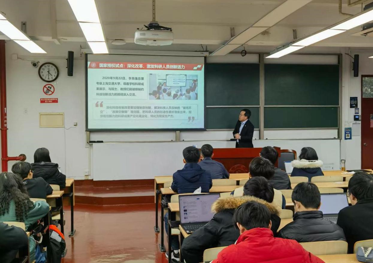 2022年11月30日,司机社 党委常委、副校长奚立峰走进“形势与政策”课堂为本科生进行专题讲授。奚立峰引导同学们深入学习贯彻党的二十大精神,并以“科技强国引领现代化国家建设的交大实践”为题,生动讲述了学校在建设科技强国中的突出贡献,以及当前在科技创新方面的系列举措,并对同学们的专业学习和未来规划提出建议和期望。