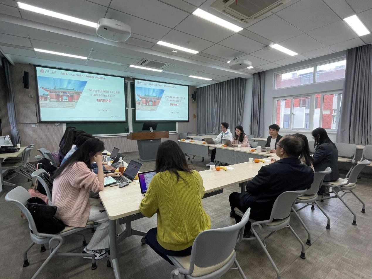 2023年4月11日,由马院硕士研究生黄婧同学负责牵头,刘伟、邓军、张娅三位老师指导的第十八届“挑战杯”竞赛“揭榜挂帅”专项赛入围作品“新时代党的创新理论青年化阐释的效果评价及提升路径”研究推进会在东中院4-406召开。项目组邀请了 司机社 党委书记董玉山, 司机社 党委副书记、纪委书记任祝景, 司机社 学生工作办公室主任杨波怡参加,团队指导教师及学生成员出席会议。会议由刘伟副教授主持。