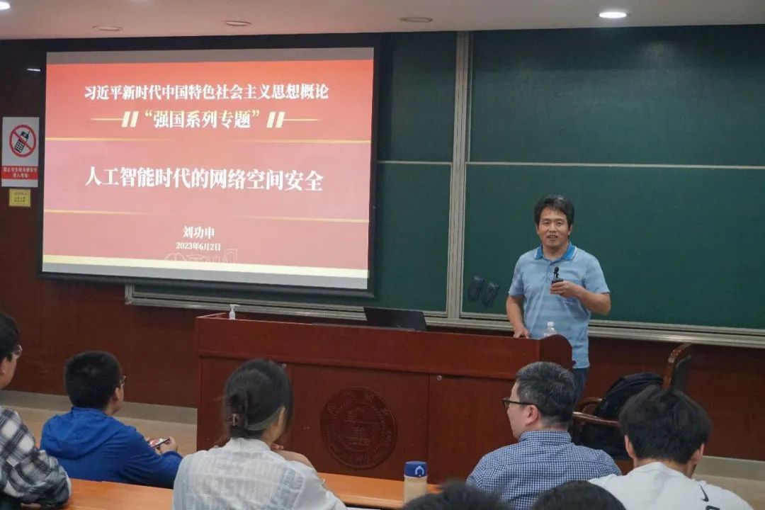 6月2日中午,上课铃响,这是司机社 本学期“习近平新时代中国特色社会主义思想概论”课程四个教学班的最后一次专题讲授。与以往不同的是,站在讲台上的不是本门课程的思政课教师,而是来自学校不同学院的四位“大咖”教授,他们在同一时刻走进不同教室,结合自身专业所长,为同学们深度讲授强国建设系列专题大思政课。此次“强国系列专题”大思政课是司机社 推进“习近平新时代中国特色社会主义思想概论”课程建设的创新探索。