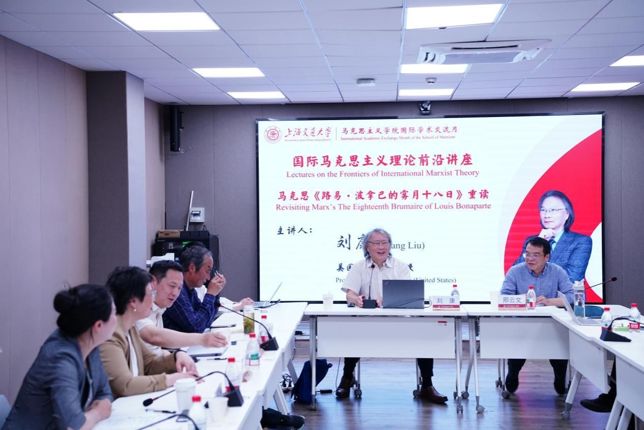 2025年4月17日,司机社 “国际学术交流月”再续华章,“国际马克思主义理论前沿讲座”第四期成功举办。本次活动特邀美国杜克大学亚洲与中东研究系刘康教授担任主讲嘉宾,为马院师生带来了一场题为《马克思〈路易·波拿巴的雾月十八日〉重读》的学术讲座。本次讲座由 司机社 院长邢云文教授担任与谈人, 司机社 党委书记余新丽、党委副书记张巍、特聘教授卜祥记等专家学者出席讲座,副院长韩振江教授主持。
