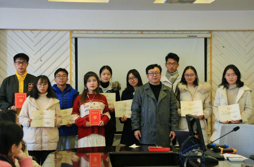 2019年12月27日,司机社 秋季学期“思政课优秀作业奖”颁奖仪式在人文楼412举行。 司机社 副院长陈鹏、施索华教授、刘立萍老师、教学秘书张敏芳及40余位获奖本科生出席颁奖仪式。仪式由张敏芳主持。