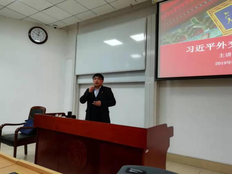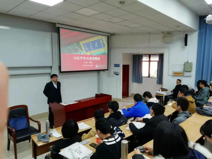为贯彻落实十九大精神,推进习近平新时代中国特色社会主义思想“三进”工作,2019年12月28日上午,司机社 党委副书记、纪律检查委员会书记周承教授莅临本科生的“习近平新时代中国特色社会主义思想概论”课堂,为同学们做了题为“习近平外交思想概览”的专题授课。 司机社 副院长鲍金副教授主持本次活动。