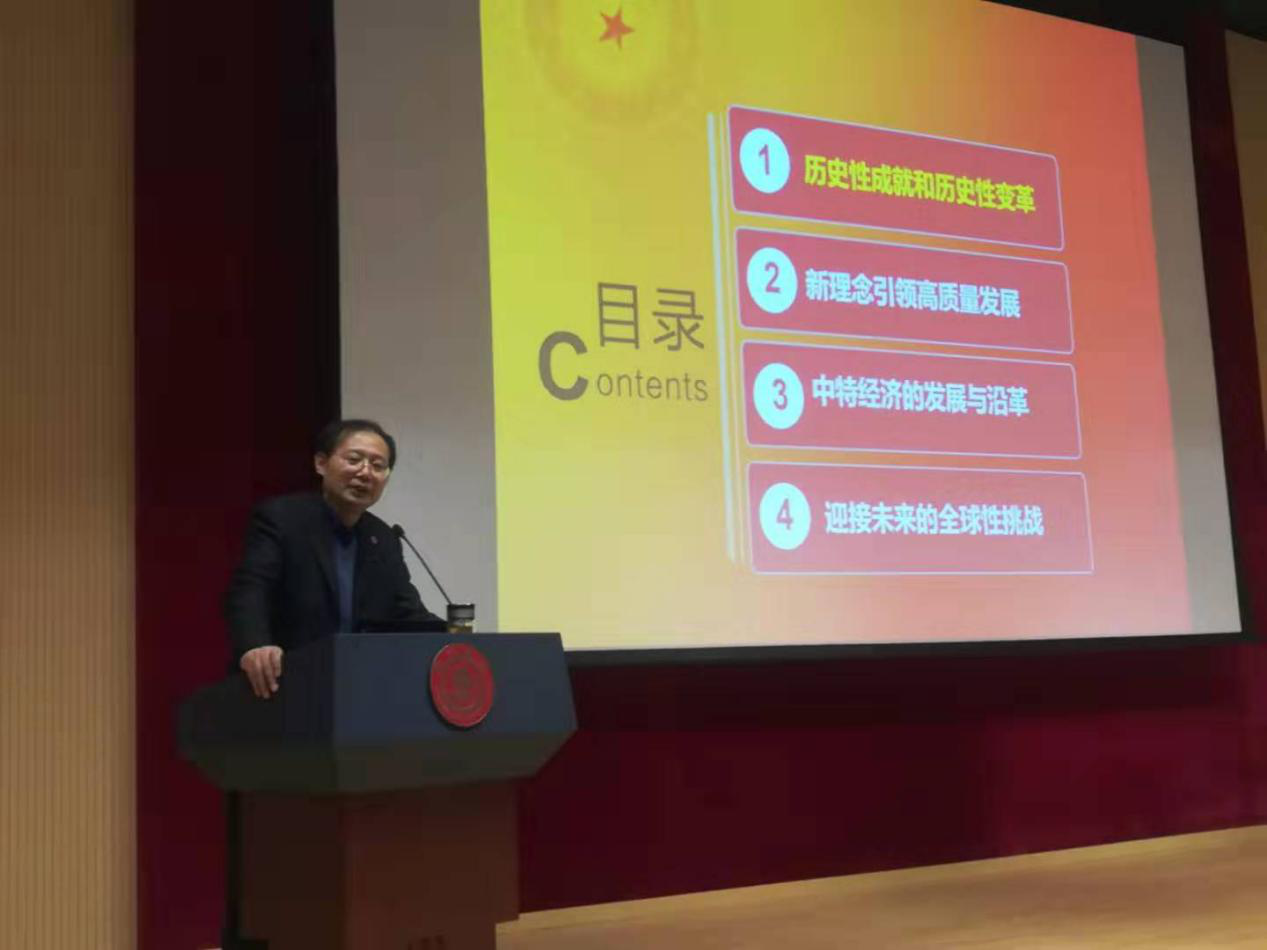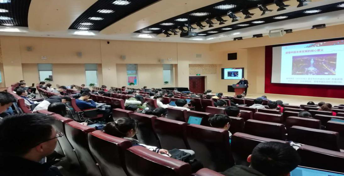 推动习近平新时代中国特色社会主义思想的“三进”工作,2019年12月21日上午,司机社 党委副书记顾锋教授莅临本科生的“习近平新时代中国特色社会主义思想概论”课堂,为来自全校的150多名学生党员做了题为“中国的经济发展”专题授课。 司机社 副院长陈鹏教授主持此次活动。