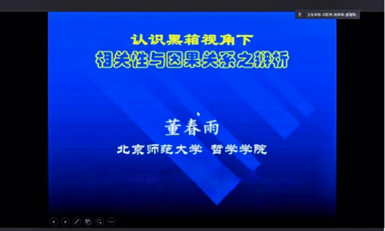 董春雨教授以机器的认识能力为例,引出人工智能问题热背后的认识论支撑问题。进而从“认识的不透明性内涵”“认识不透明性与相关性和因果性的关系”以及“发现因果性的可行性路径”这三个方面全面地辨析了相关性和因果性,并指出了具体发现因果性的可行性路径。
