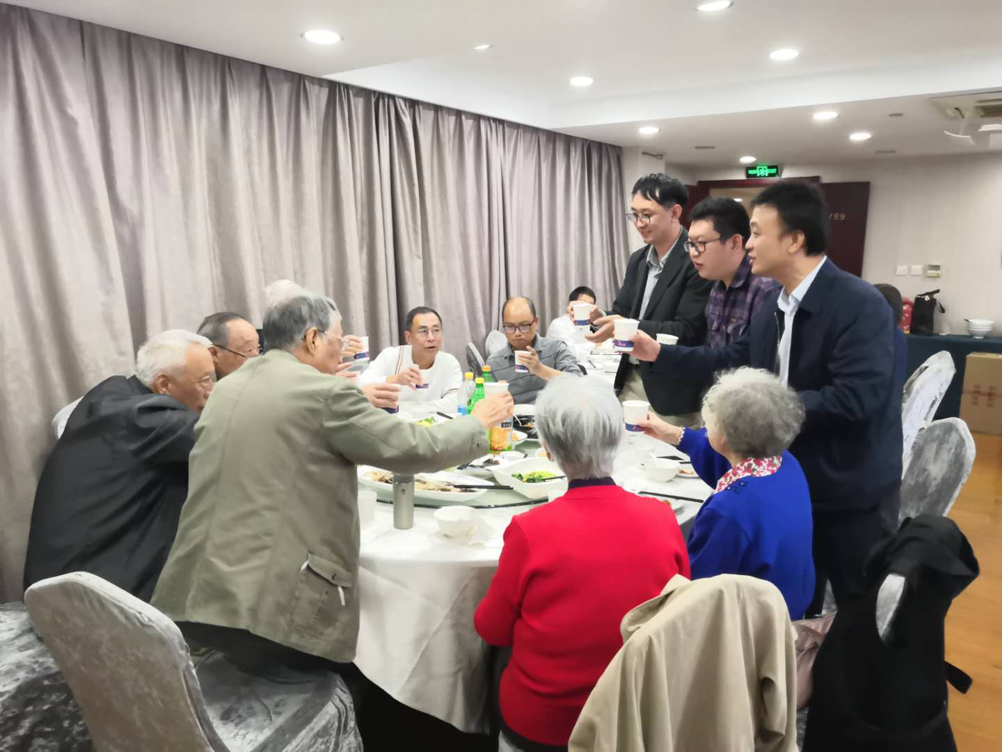 在座谈会上,学院党委书记王震询问了老教师们的生活、身体等情况,并代表学院给他们送去了慰问品,感谢他们为学院做出的贡献,会议期间,王震书记首先就当前学院整体发展、学科建设、师生工作学习情况进行详实汇报,并表示学院今日的成就都建立在老同志们为学院发展过程中做出的巨大贡献之上。随后,退休教师们相继发言,他们回顾了自己曾经在交大马院的工作时光,并鼓励青年老师、同学们树立目标,明确方向,踏实认真,潜心做好自己的工作。在发言中,老教师们表示对学院一直以来给予他们的重视和关心表示真诚的感谢,并衷心祝愿学院在今后新的建设和发展中再创辉煌佳绩,他们表示今后将会一如既往的关心和支持学院和学院的工作和发展。座谈会结束之后,与会老同志共进午餐,退休教师们齐聚在餐厅里,脸上洋溢着幸福的笑容,一起感受节日的快乐。