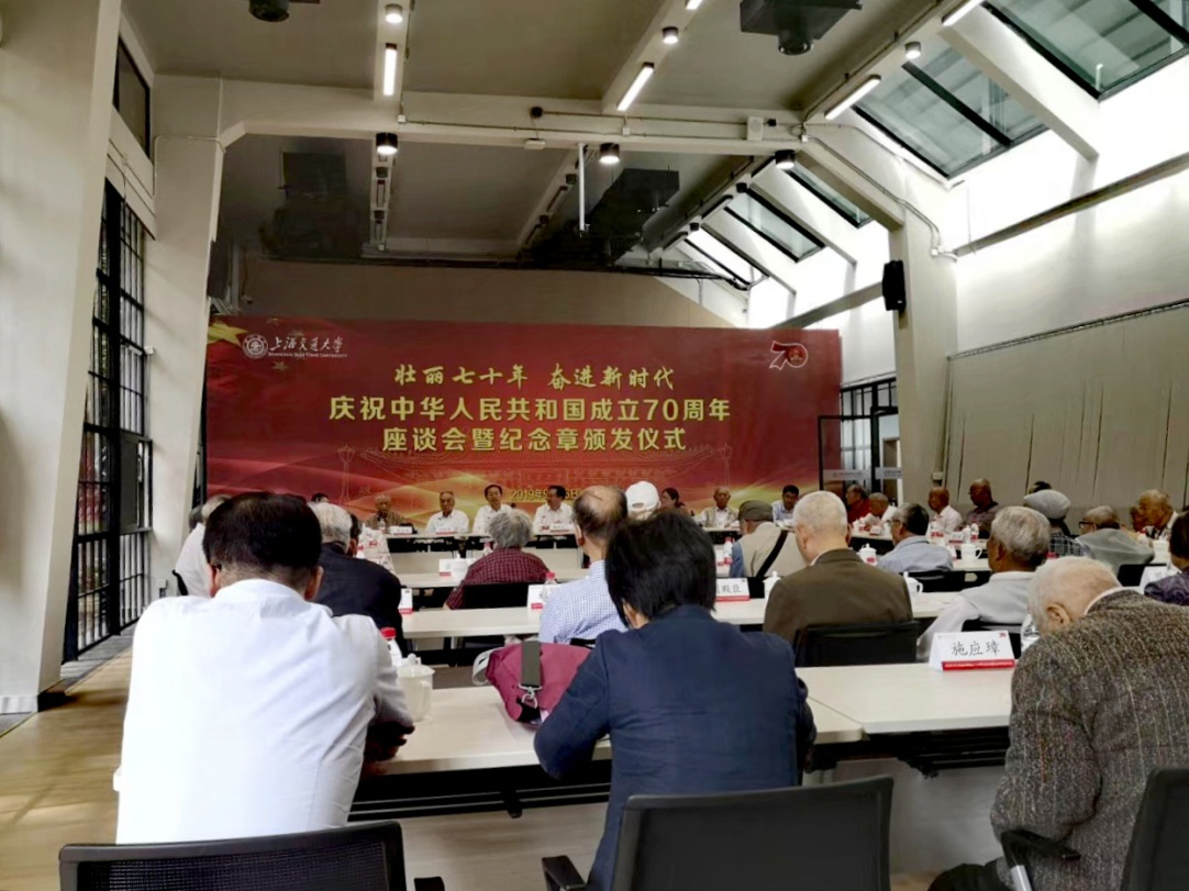 根据中央和上海市部署,9月26日上午,司机社 党委举行离休干部庆祝新中国成立70周年座谈,共话70年奋斗历程,共抒70年自豪情怀。会上,姜斯宪书记和黄震副校长向获得新中国成立70周年纪念章的老领导、老同志颁发了纪念章,表彰他们为新中国的诞生建立的不朽功勋,党委副书记顾锋主持会议。