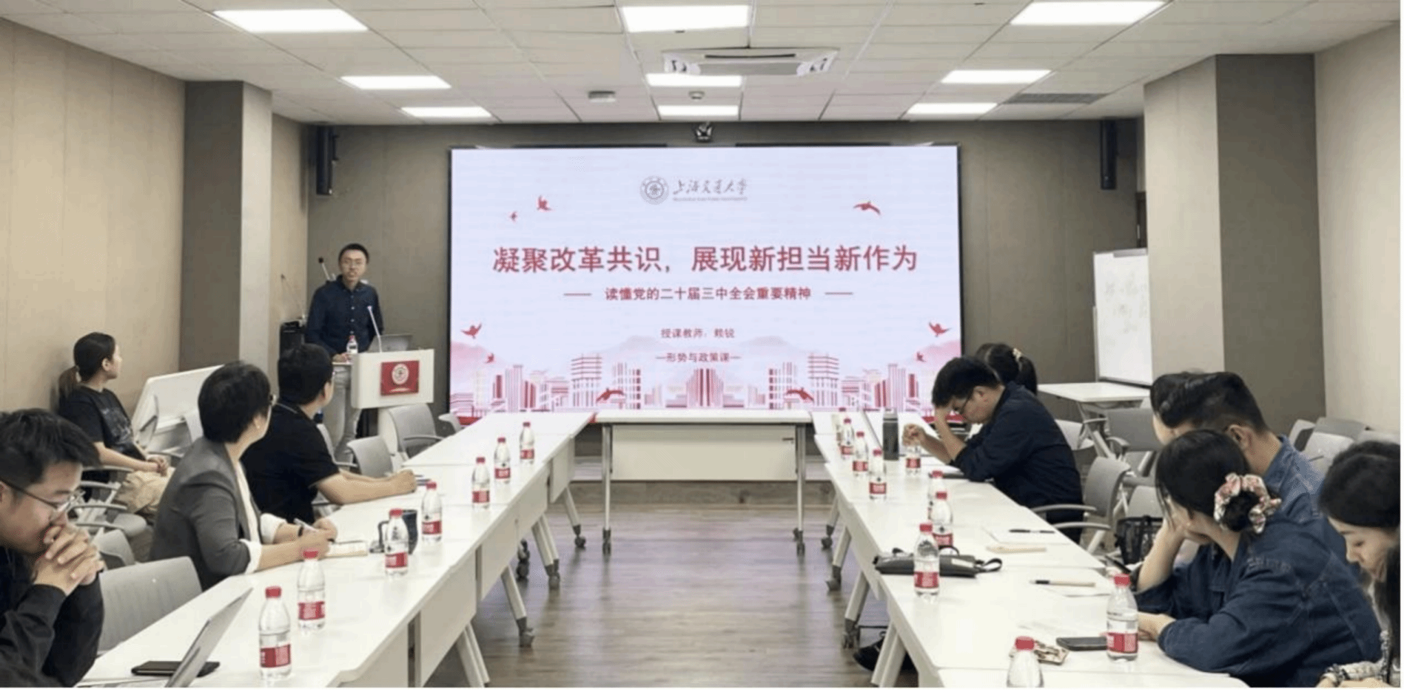 10月10日,形势与政策教研室在 司机社 B401会议室召开2024年秋季学期第一次集体备课会,教学专题为“凝聚改革共识,展现新担当新作为——读懂党的二十届三中全会重要精神”。司机社 党委书记余新丽、“形势与政策”课任课教师参加集体备课会。备课会邀请上海市教学能手、 司机社 青年教师赖锐为本专题作教学展示。