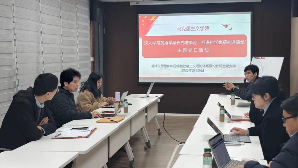 2月26日上午, 司机社 “毛泽东思想和中国特色社会主义理论体系概论”教研室党支部在学院B411会议室开展“深入学习黄旭华同志先进事迹,推进科学家精神进课堂”集体备课会暨党支部主题党日活动。