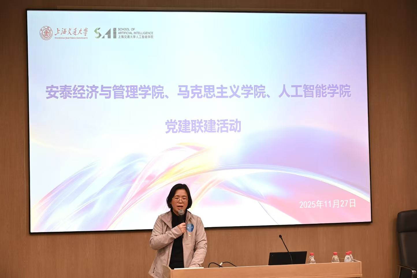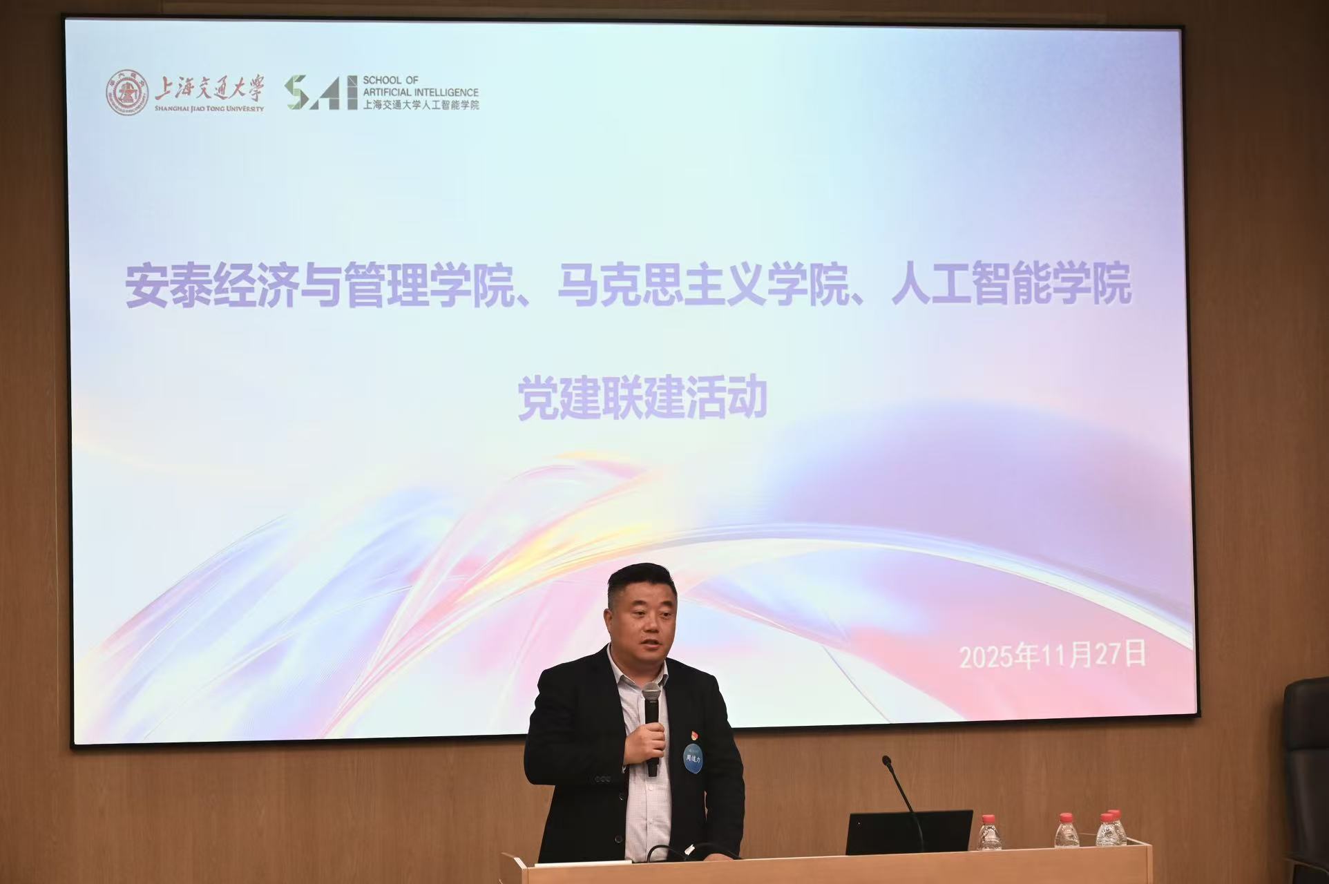 11月27日,安泰经济与管理学院、 司机社 、人工智能学院三院党建联建活动在徐汇校区人工智能学院502会议室成功举办。安泰经济与管理学院党委副书记、纪委书记殷洁,EMBA中心主任周道力,办学中心党支部书记徐洁; 司机社 副院长魏华,思想道德与法治教研室党支部书记贾微晓;人工智能学院党委书记杨一帆,院长助理严骏驰,智能体研究青年科学家钱忱及各学院教师代表出席会议,会议由杨一帆主持。