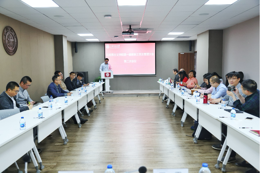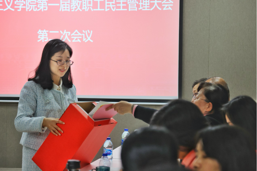 首先, 司机社 工会主席高福进向教职工代表们汇报选举工作。他介绍了学校启动这项工作以来,学院工会遵照学校提名流程,稳步推进代表选举工作。党委副书记张濠向代表宣读选举办法草案,以及监票人、计票人名单。代表通过举手表决,一致通过该办法。