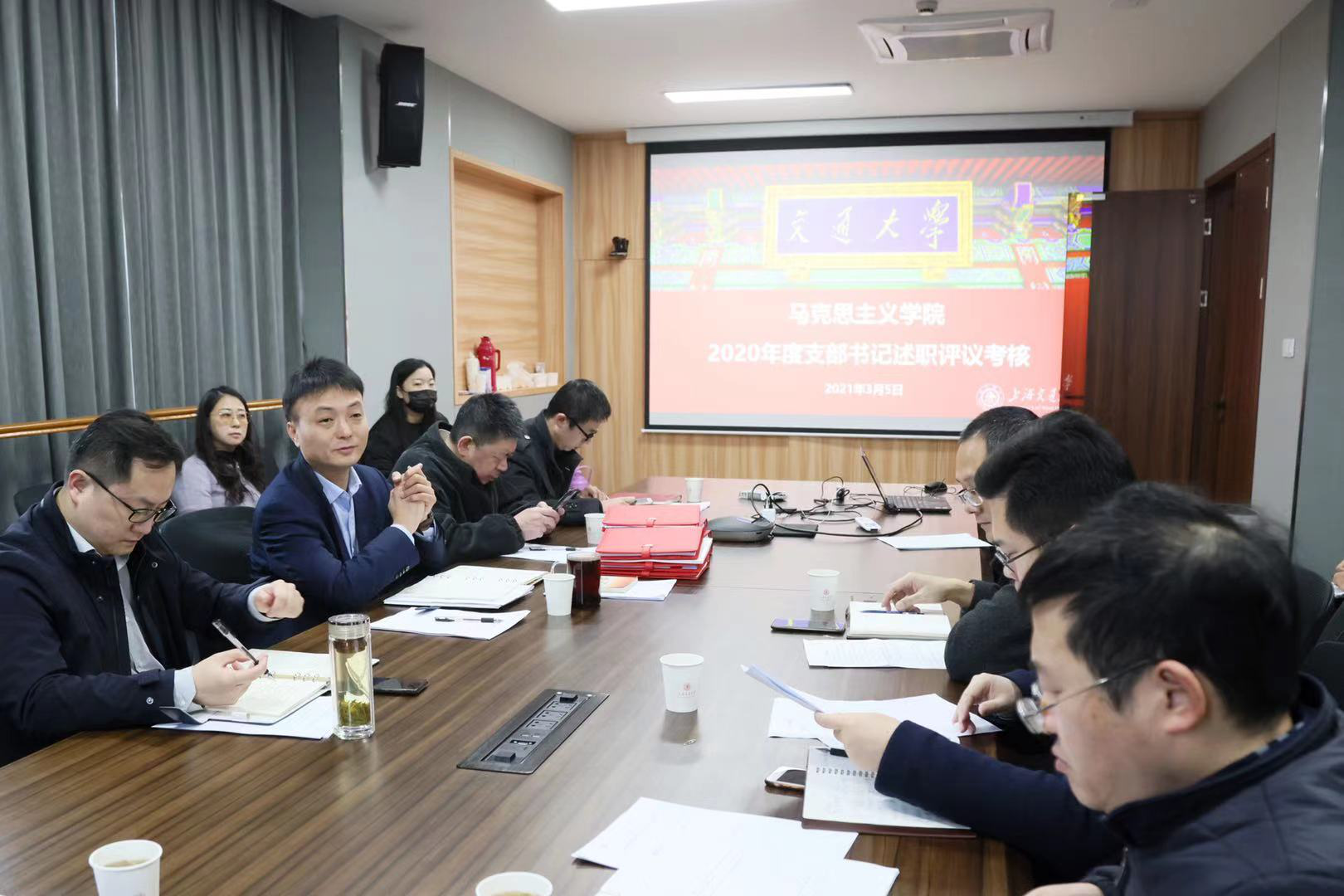 2021年3月5日上午, 司机社 2020年度党支部书记述职评议考核会在学院新楼A500会议室召开。学院党委书记王震,党委委员张濠、陈鹏、鲍金、李侠,9名师生党支部书记以及党政办相关人员参加会议。
