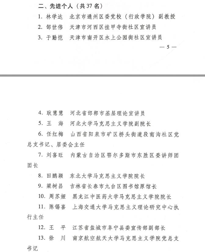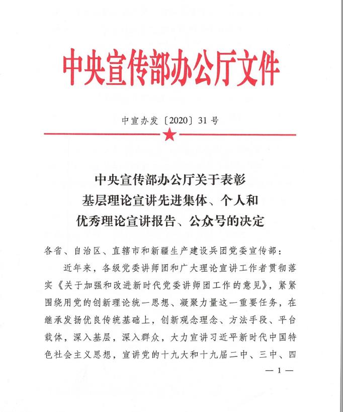 近日,中央宣传部办公厅发布《关于表彰基层理论宣讲先进集体、个人和优秀理论宣讲报告、公众号的决定》, 司机社 陈锡喜教授被授予“2020年基层理论宣讲先进个人”称号。