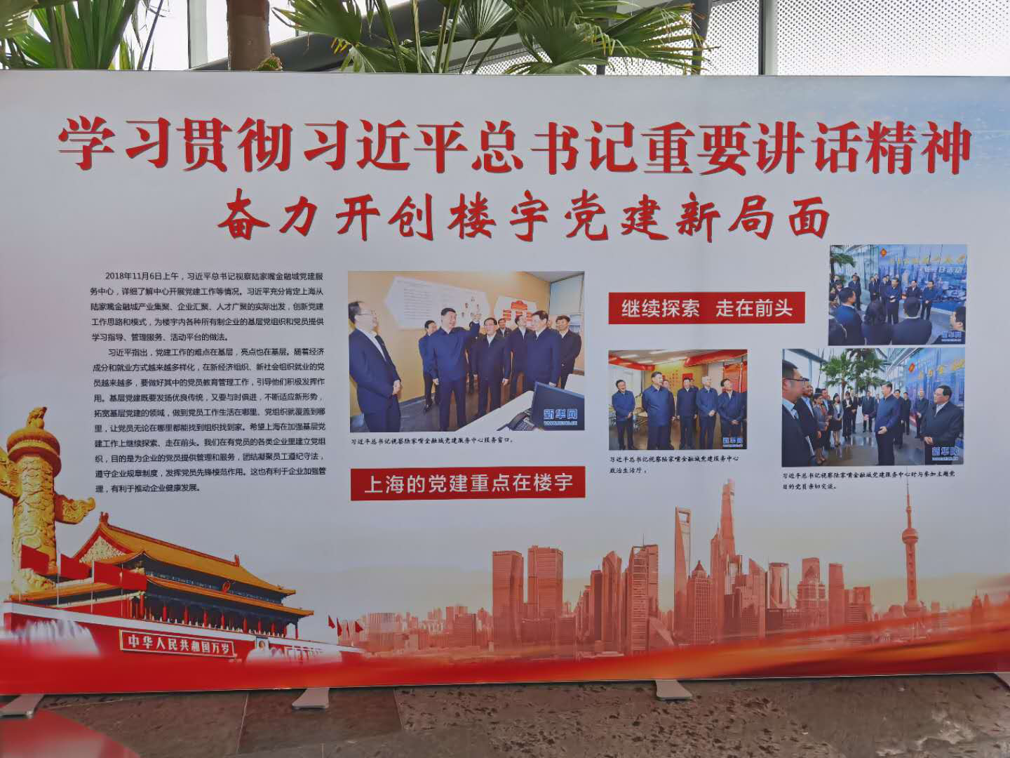 本次活动包括两部分。一是参观陆家嘴金融城党建服务中心的楼宇党建成果。党建中心建在中国第一高楼--上海中心大厦的22层,其特色是“社区共治”党建模式。2018年11月8日,习近平总书记来此参观。这些成果以展板形式放置在绿丛之中,既明亮又养眼,展示基层党组织为不同所有制、不同性质隶属关系企业和来自五湖四海白领提供的丰富多样的服务项目。
