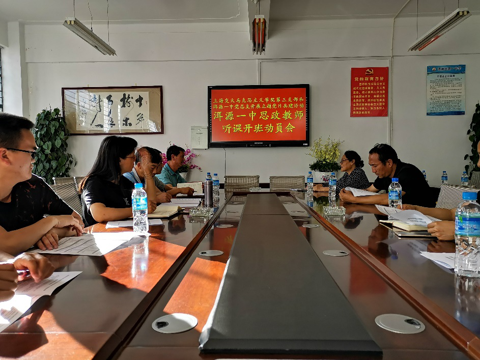 6月8日,洱源一中党组织专门召开“听课开办动员会”,校长马琴和党总支书记赵和钧、总支支委、三个支部书记及全体思政教师出席会议。赵和钧书记作动员发言,提出四方面要求:一是思政课教师要以讲政治的高度,占领思想與论的主阵地。二是精心打造生动活泼的思政课,构建好学生的三观教育,做好学生的引路人。三是以中华民族伟大复兴的责任担当,讲好中国故事;尤其是从网课中深入领会“党史、新中国史、改革开放史和社会主义发展史”精髓,讲好“四史”故事,让中学生进一步了解党史、国情。四是以一中人的姿态,听好课,作好与交大第三教工党支部党员交流的准备。