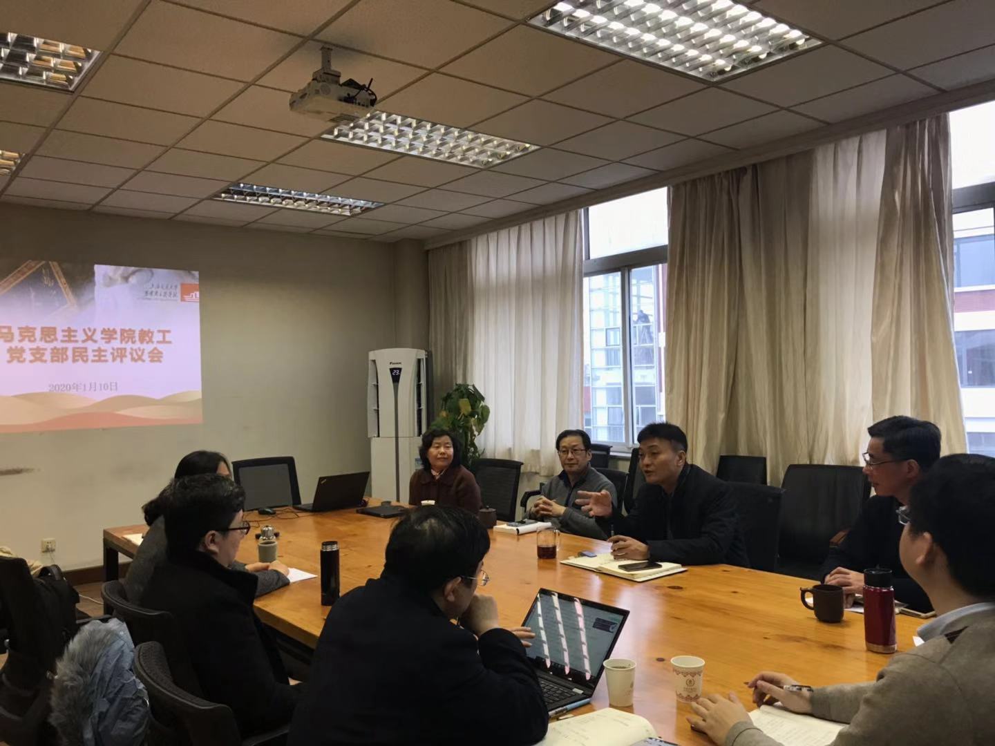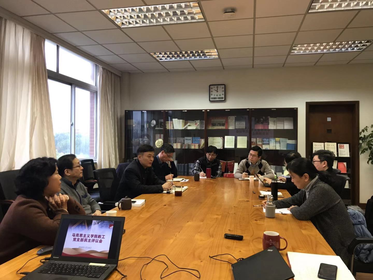 为深入学习习近平新时代中国特色社会主义思想和党的十九大、十九届四中全会精神,贯彻落实学校党委《关于2019年度二级单位党组织书记抓“三大主体责任”述职评议考核工作的通知》有关要求,2020年1月10日上午, 司机社 党委组织召开2019年度教工党支部书记述职评议考核会。学院党委书记王震、副书记陈业新、各教工党支部书记、各教研室主任10余人与会。会议由学院党委书记王震主持。