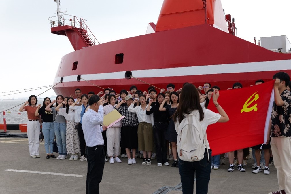 活动最后,在 司机社 党委副书记杜夏明的带领下,全体师生党员在“雪龙2”号前重温入党誓词,为活动画上了圆满的句号。