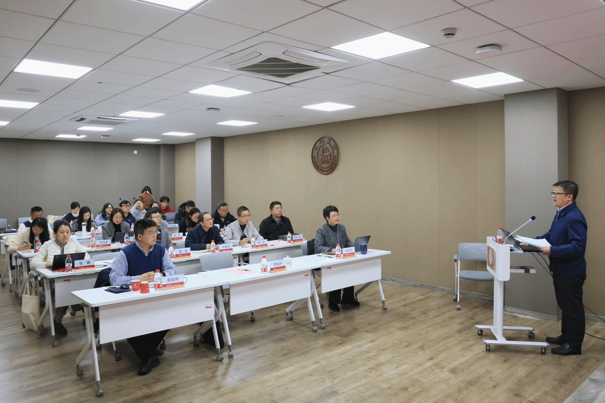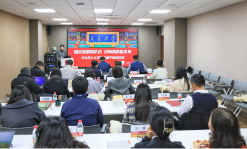 2月28日, 司机社 顺利举行“建设高素质队伍,推动高质量发展”中层干部培训班开班仪式暨首场专题报告。司机社 纪委副书记嵇绍岭、党委组织部蔡毓彬,马院领导班子成员、教职工党支部书记、教研室主任、行政各办公室负责人等参加培训,院党委书记余新丽主持开班式。