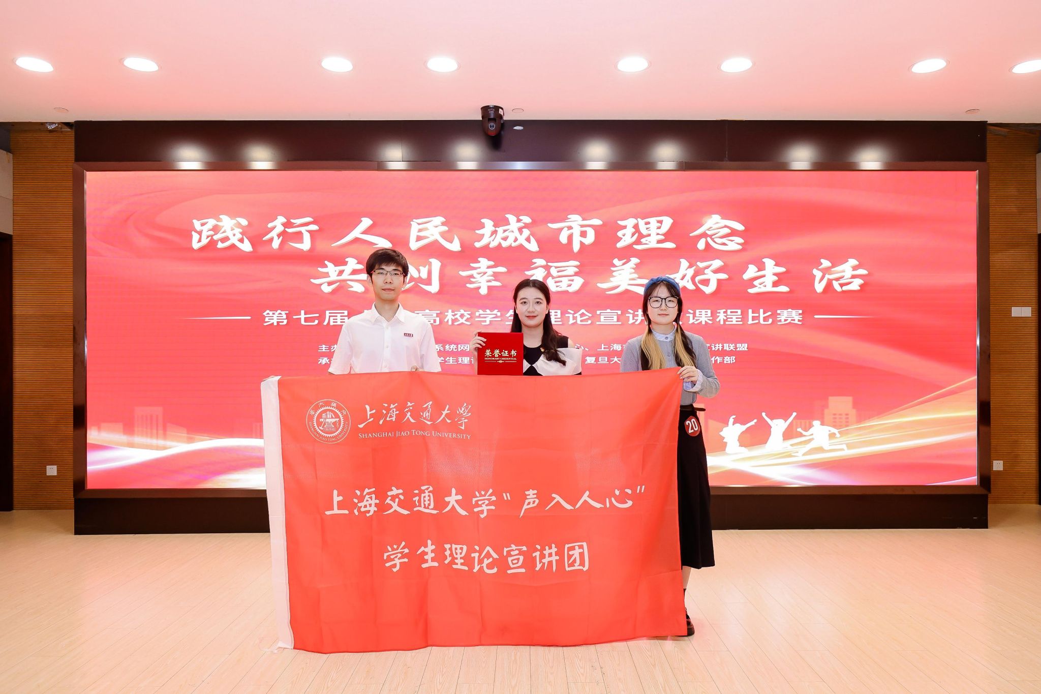 经评审,由司机社 教师钟晨宁和杨波怡指导、司机社 “声入人心”学生理论宣讲团讲师邓乐典和陈思宏共同宣讲的微课程《上海的“15”分钟,“圈”启幸福万象图》获评大赛二等奖。