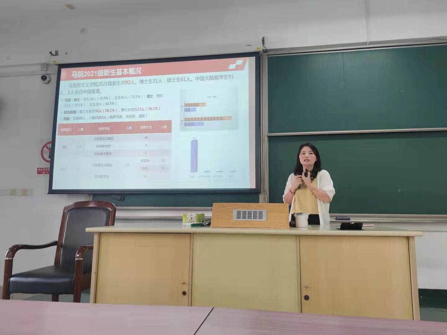 2021年9月, 司机社 迎来了90余名2021级新生,为帮助新生尽快适应交大学习生活,学院组织入党介绍会、图书馆资源报告会、安全教育、心理健康、学生事务、校史参观学习等系列入学教育报告。报告会由马院2021级年级思政袁玲组织。