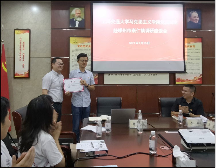 2021年7月15日-17日,司机社 学生党支部暑期实践团在绍兴嵊州和苏州市开展调研学习,感受乡村振兴成果,体验城市社区治理模式,实地调研基层党建工作。 司机社 党委副书记张濠、任祝景、青年教师贾微晓等带团参加有关活动。