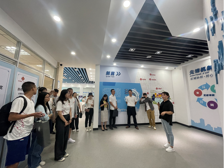 7月16日,实践团一行来到苏州市吴中区开展调研学习。在吴中区湖景花园社区党支部书记沈芳带领下,实践团参观了郭巷街道一站式党群驿站,了解破解基层治理难题的现实举措。