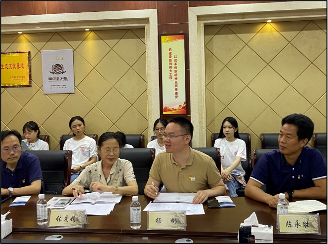 下午,在参观完辛亥革命志士王金发故居后,绍兴市委组织部副部级组织员张爱娟、公务员一处副处长杨彬、嵊州市委组织部部务会议成员、干部监督室主任周江毅、嵊州市崇仁镇党委书记陈永胜等与实践团一行在崇仁镇温泉湖村围绕选调生工作和基层党建展开座谈。