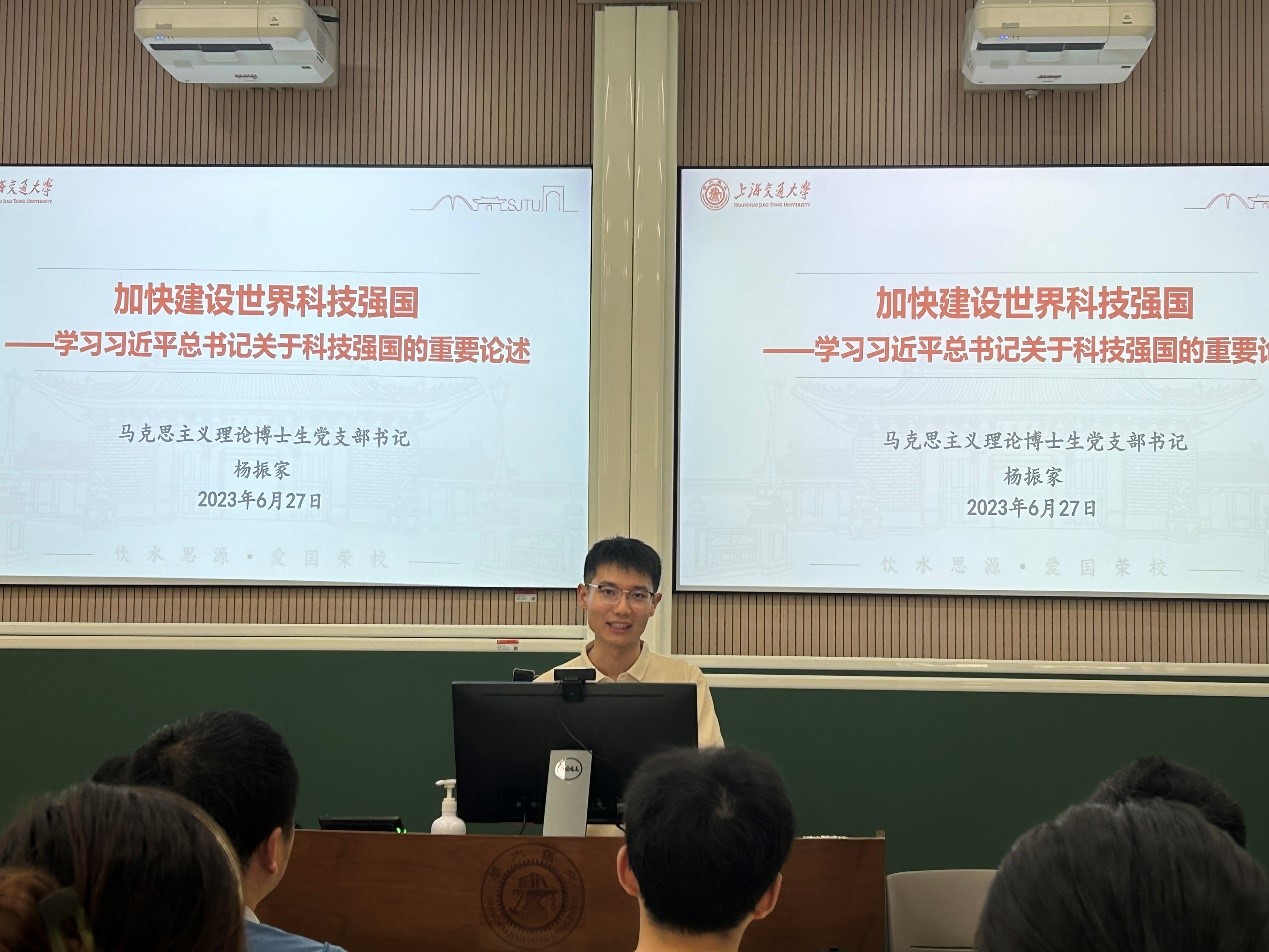 会议开始,杨振家作题为《加快建设世界科技强国——学习习近平总书记关于科技强国的重要论述》的主题党课讲授。他从党的二十大报告中关于“科技强国”的重要论述出发,围绕习近平总书记关于科技强国重要论述的生成逻辑、内涵要义和实践品格等展开讲授。杨振家指出,习近平总书记关于科技强国的重要论述立足现代国际竞争的形势特点和我国经济转型发展的动能问题,阐明了建设世界科技强国的目标导向、动力来源、首要资源和战略构想,对推进全面建设社会主义现代化国家和社会高质量发展具有十分重要的理论价值和实践意义。支部党员要深入学习贯彻习近平新时代中国特色社会主义思想,把握这一思想的世界观、方法论和贯穿其中的立场观点方法,立足主题教育“学思想 强党性 重实践 建新功”总要求,将科学理论转化为切实的行动。